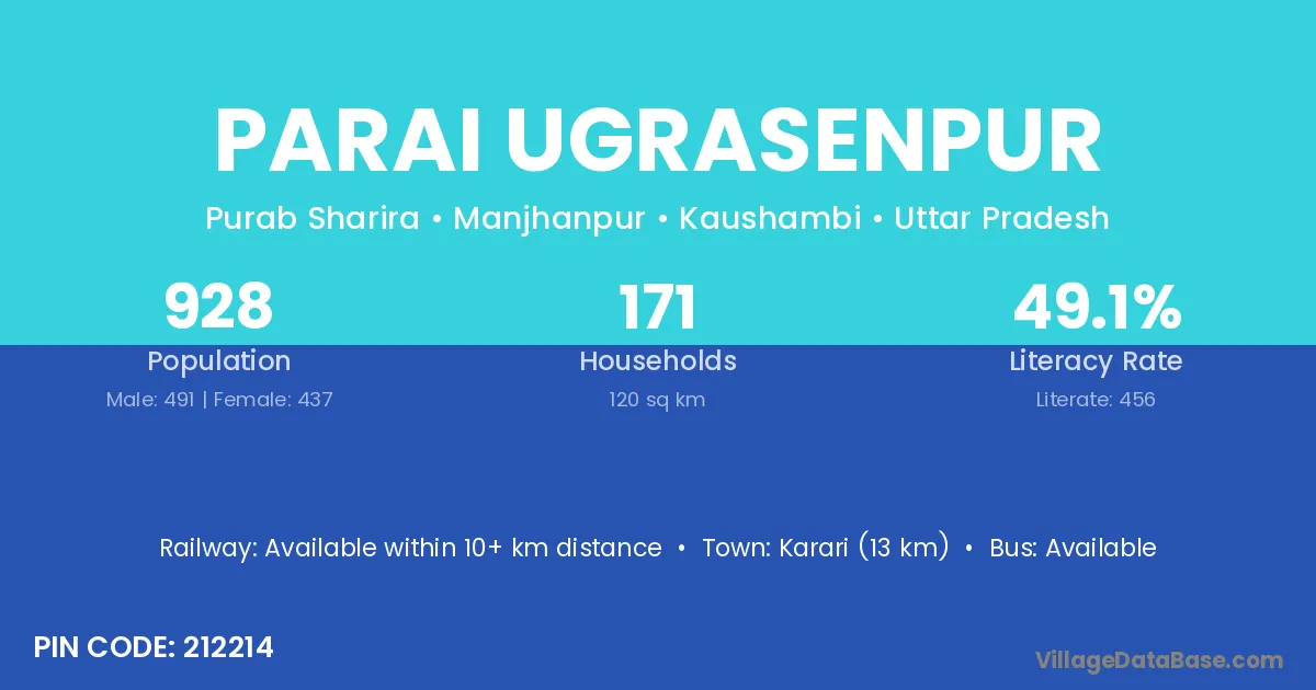 Karari (13 km) is the nearest town to Parai Ugrasenpur village for major economic activities and is located approximately 13 km away.