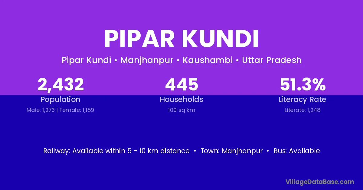 Manjhanpur is the nearest town to Pipar Kundi village for major economic activities