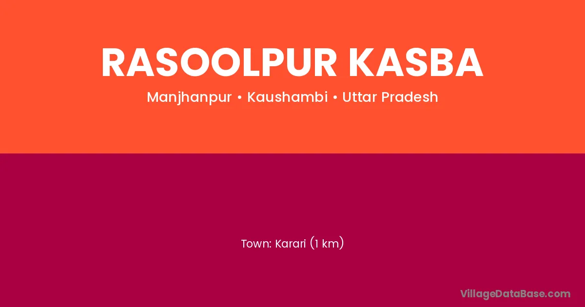 Karari (1 km) is the nearest town to Rasoolpur Kasba village for major economic activities and is located approximately 1 km away.
