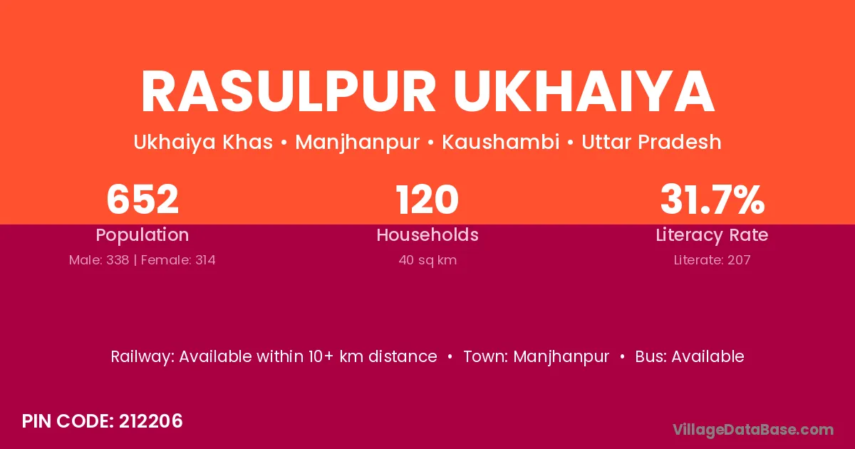 Rasulpur Ukhaiya village has a total population of 652 people, of which 338 are males and 314 are females.