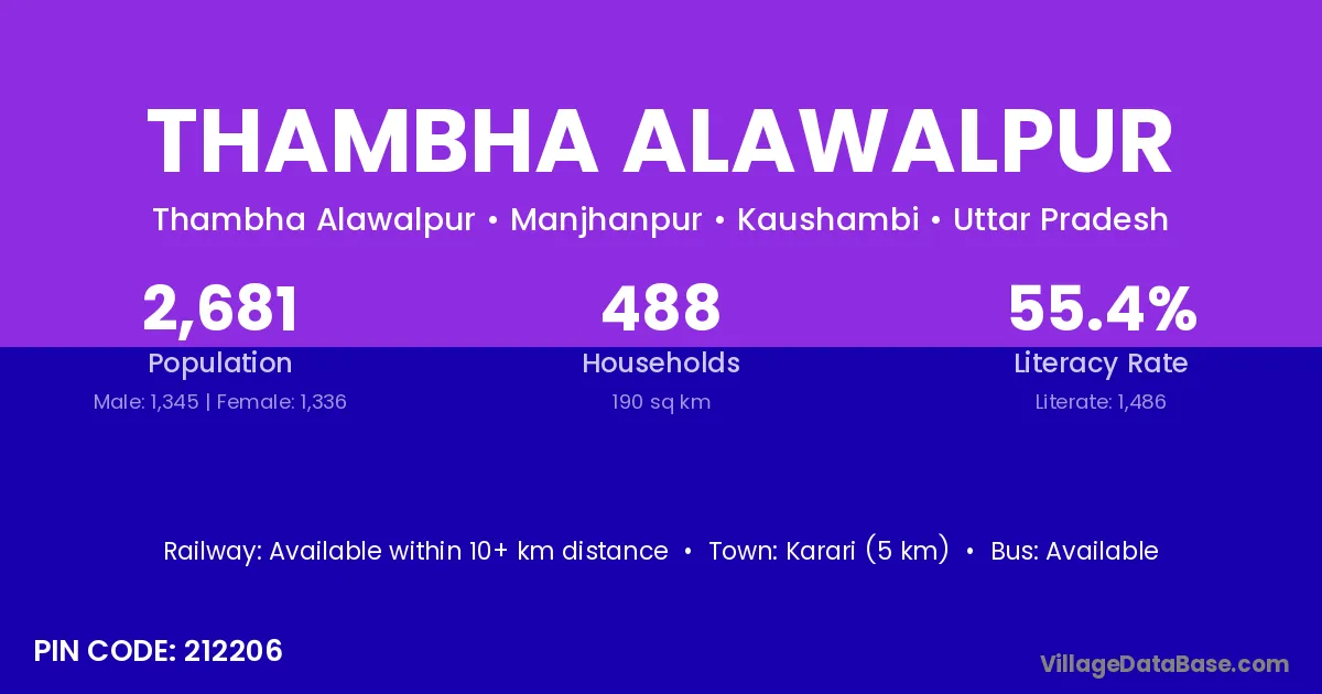 Karari (5 km) is the nearest town to Thambha Alawalpur village for major economic activities and is located approximately 5 km away.