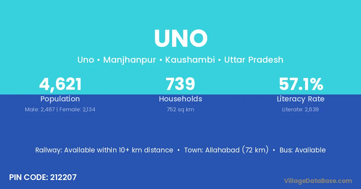 Allahabad (72 km) is the nearest town to Uno village for major economic activities and is located approximately 72 km away.