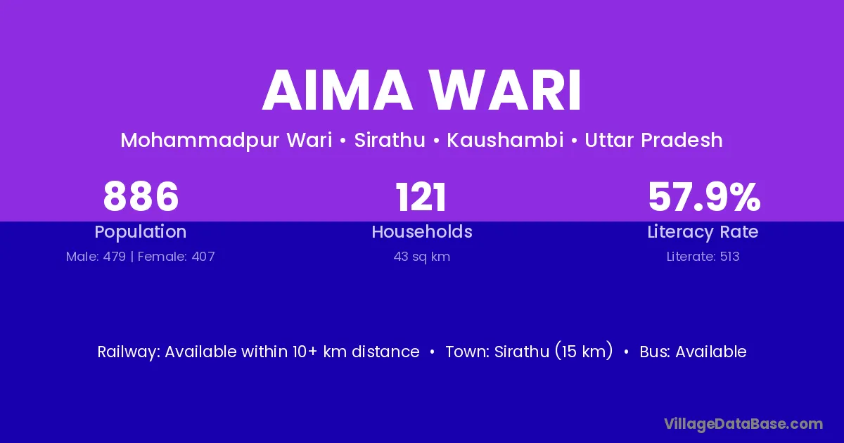 Sirathu (15 km) is the nearest town to Aima Wari village for major economic activities and is located approximately 15 km away.