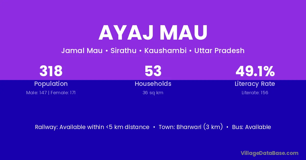 Bharwari (3 km) is the nearest town to Ayaj Mau village for major economic activities and is located approximately 3 km away.