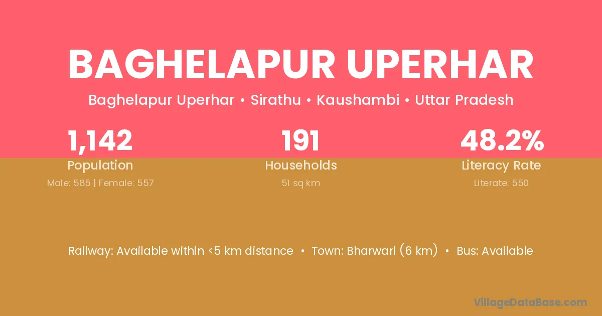 Bharwari (6 km) is the nearest town to Baghelapur Uperhar village for major economic activities and is located approximately 6 km away.
