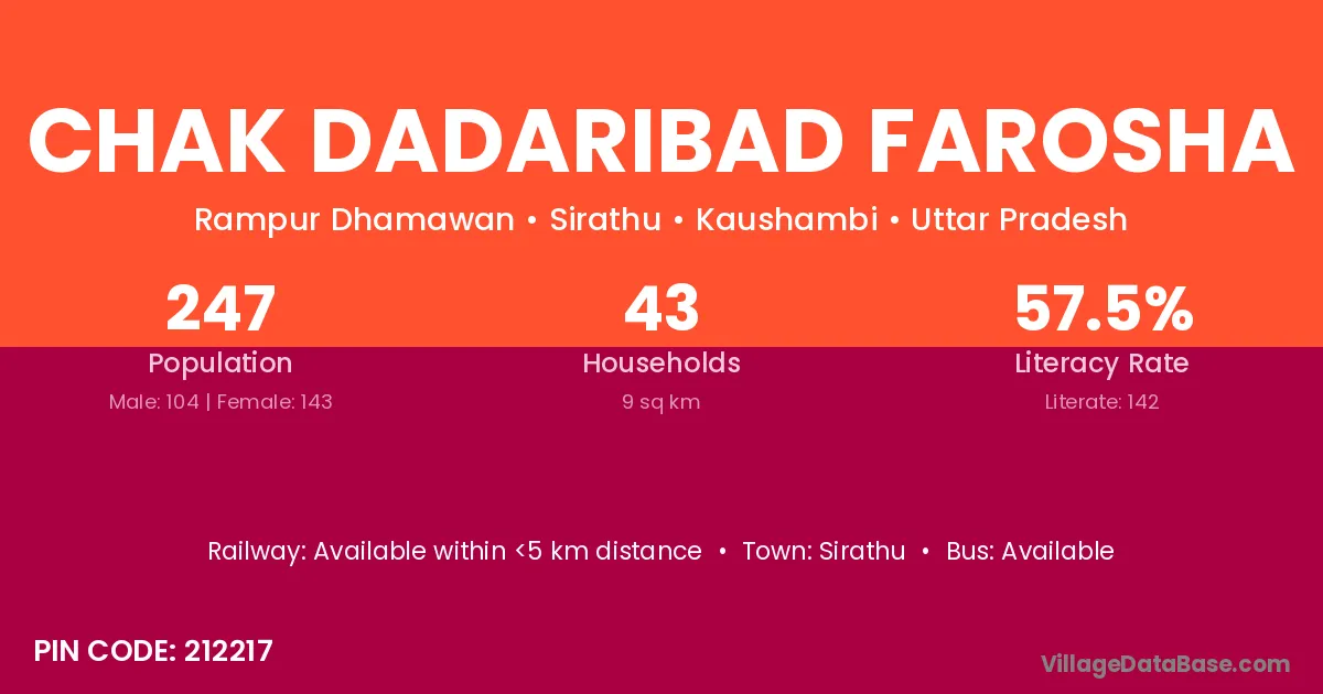 Chak Dadaribad Farosha village is located in the Sirathu Tehsil of the Kaushambi district in Uttar Pradesh .