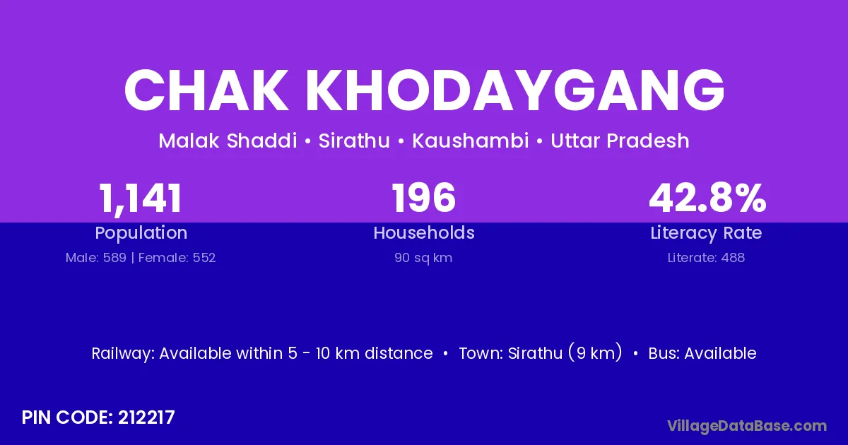 Sirathu (9 km) is the nearest town to Chak Khodaygang village for major economic activities and is located approximately 9 km away.