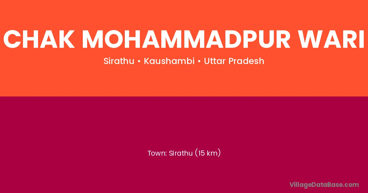 Sirathu (15 km) is the nearest town to Chak Mohammadpur Wari village for major economic activities and is located approximately 15 km away.