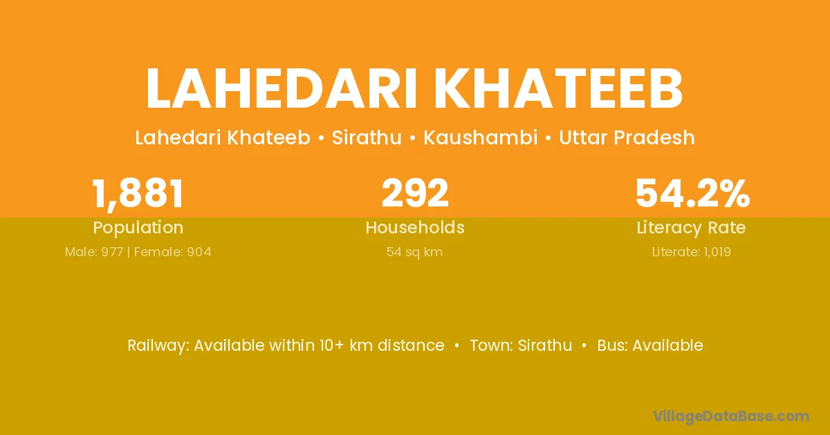 Lahedari Khateeb village has a total population of 1,881 people, of which 977 are males and 904 are females.