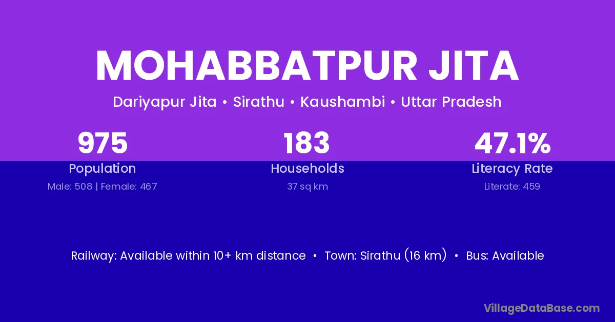 Mohabbatpur Jita village has a total population of 975 people, of which 508 are males and 467 are females.