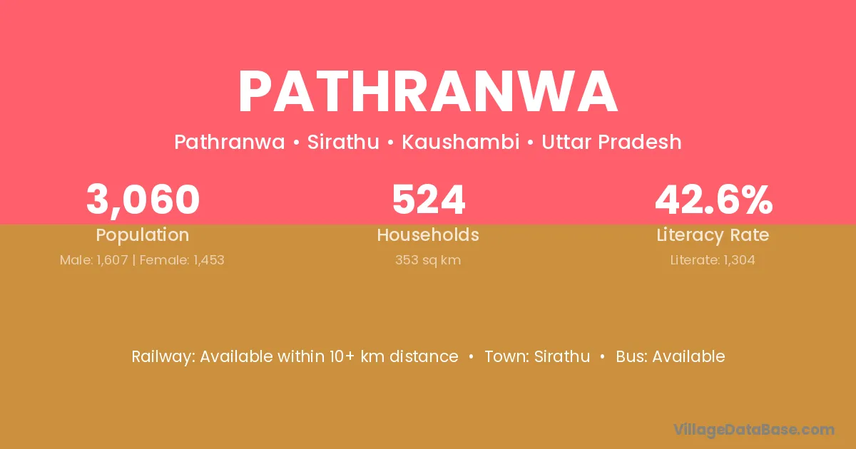 Pathranwa village has a total population of 3,060 people, of which 1,607 are males and 1,453 are females.