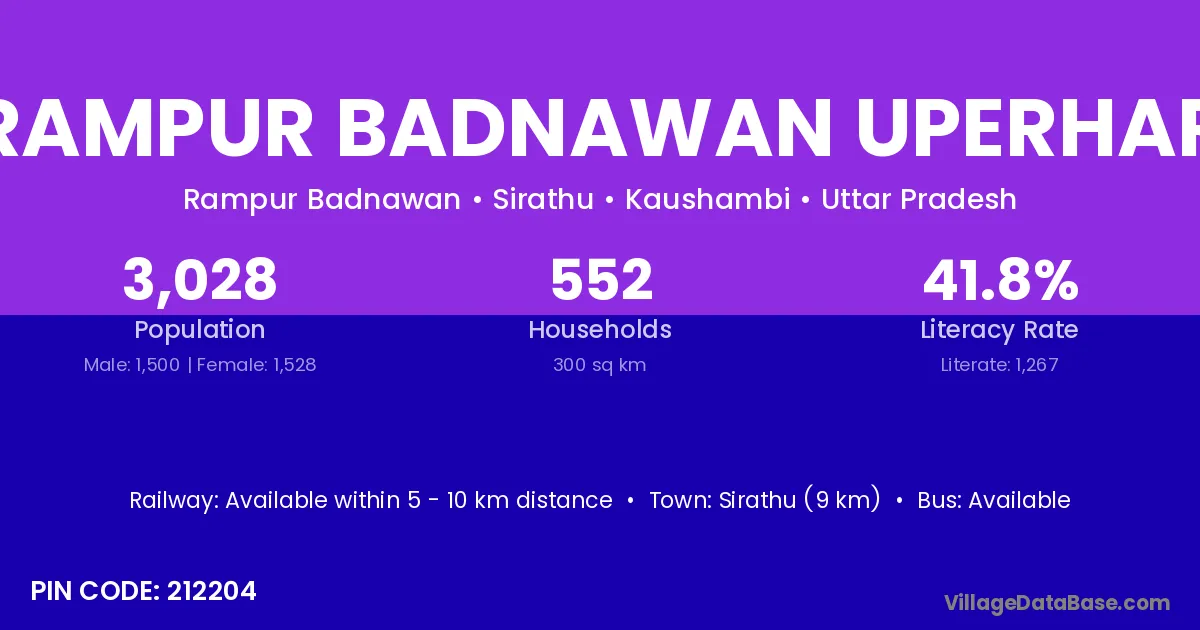 Sirathu (9 km) is the nearest town to Rampur Badnawan Uperhar village for major economic activities and is located approximately 9 km away.