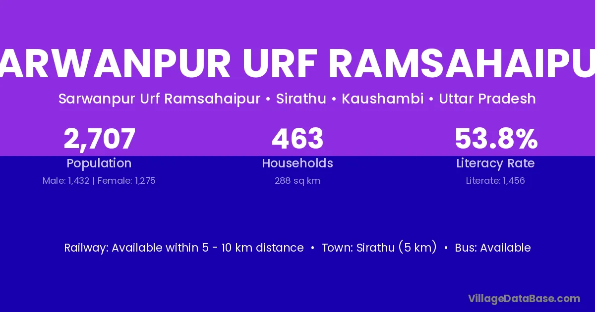 Sarwanpur Urf Ramsahaipur village has a total population of 2,707 people, of which 1,432 are males and 1,275 are females.