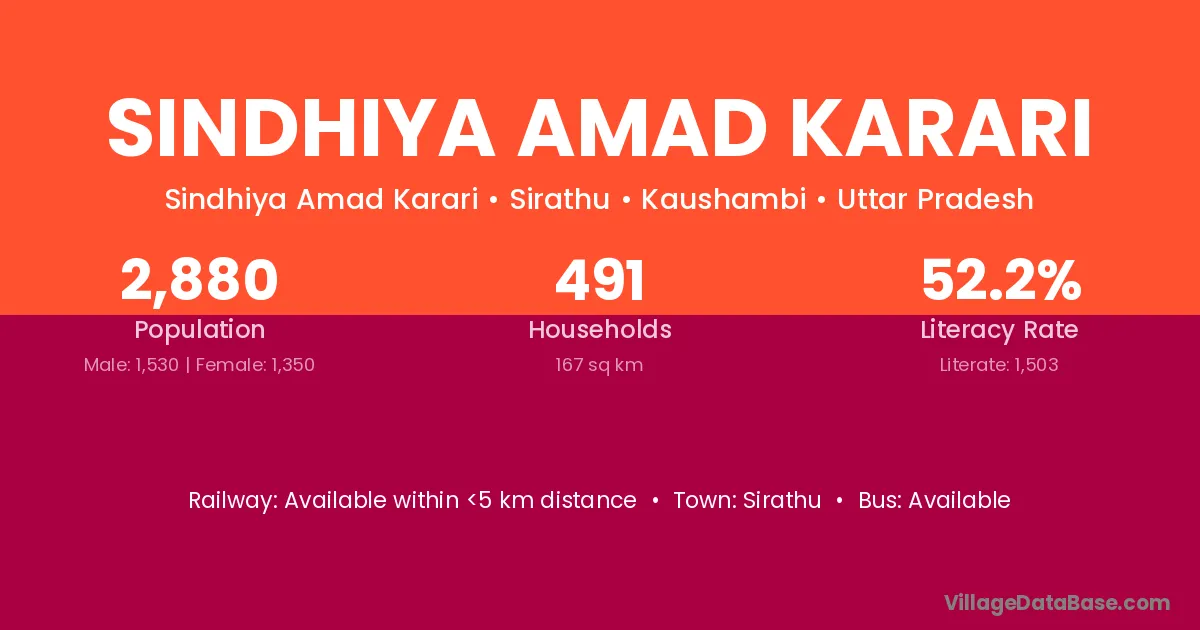 Sindhiya Amad Karari village is located in the Sirathu Tehsil of the Kaushambi district in Uttar Pradesh .