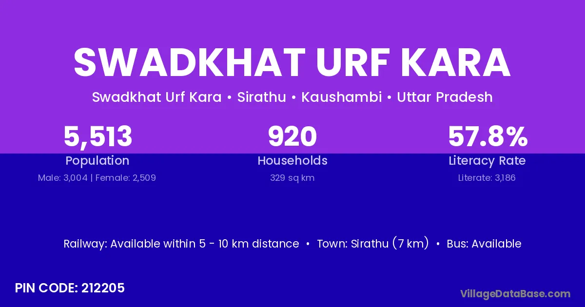 Swadkhat Urf Kara village has a total population of 5,513 people, of which 3,004 are males and 2,509 are females.