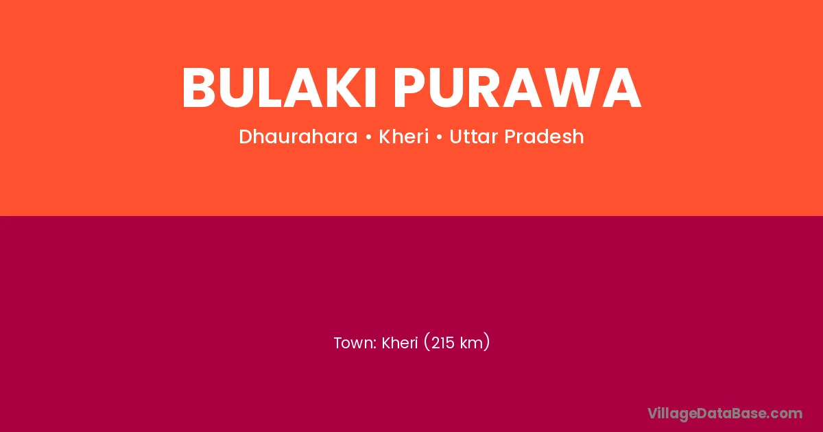 Kheri (215 km) is the nearest town to Bulaki Purawa village for major economic activities and is located approximately 215 km away.