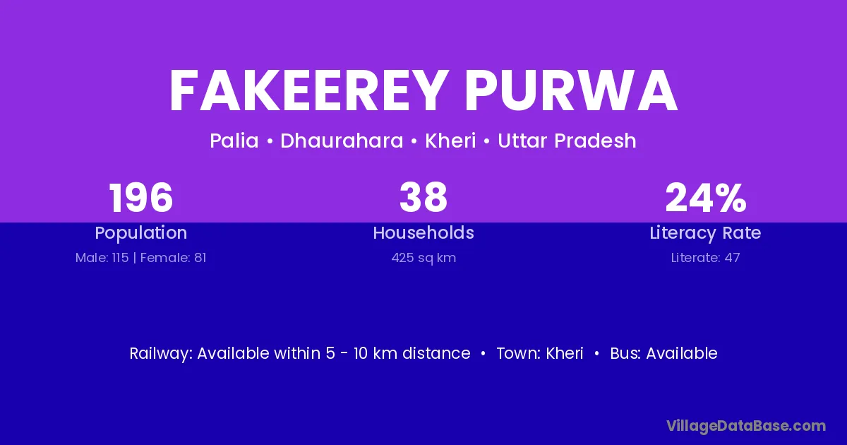 Fakeerey Purwa village has a total population of 196 people, of which 115 are males and 81 are females.