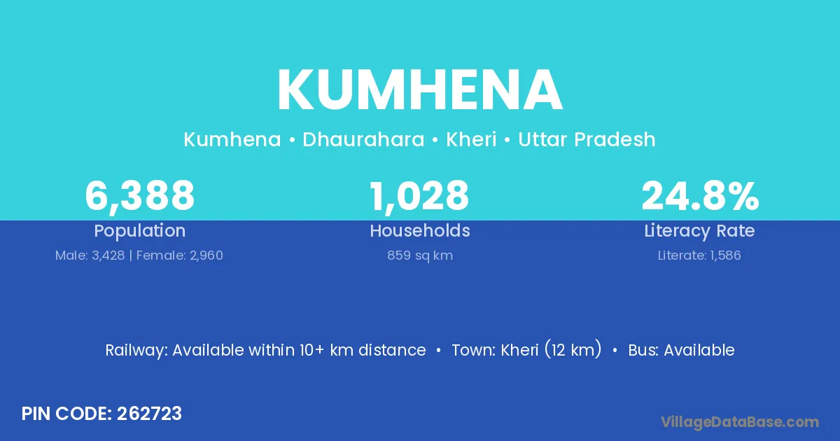 Kheri (12 km) is the nearest town to Kumhena village for major economic activities and is located approximately 12 km away.