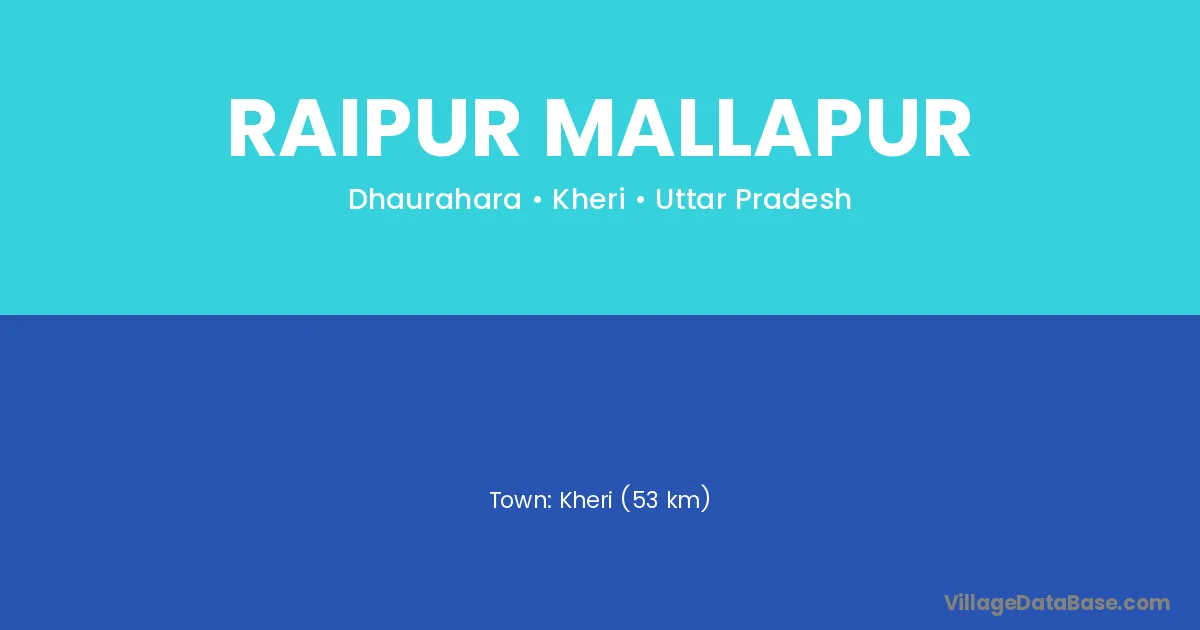 Kheri (53 km) is the nearest town to Raipur Mallapur village for major economic activities and is located approximately 53 km away.