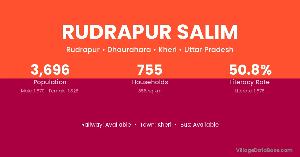 Rudrapur Salim village has a total population of 3,696 people, of which 1,870 are males and 1,826 are females.
