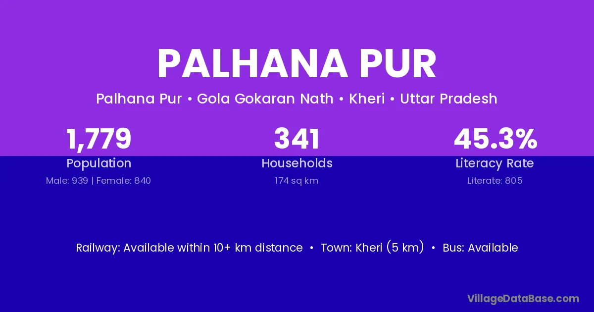 Kheri (5 km) is the nearest town to Palhana Pur village for major economic activities and is located approximately 5 km away.