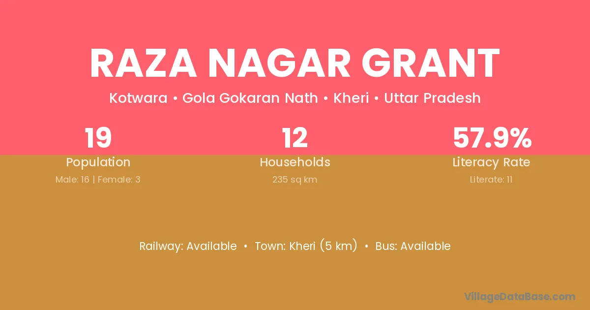 Raza Nagar Grant village has a total population of 19 people, of which 16 are males and 3 are females.