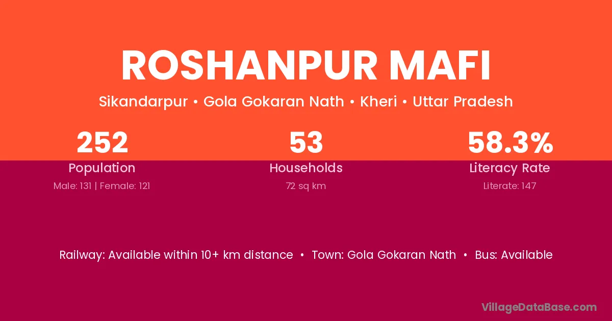 Gola Gokaran Nath is the nearest town to Roshanpur Mafi village for major economic activities
