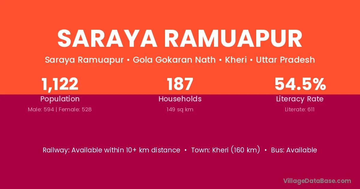 Saraya Ramuapur village has a total population of 1,122 people, of which 594 are males and 528 are females.