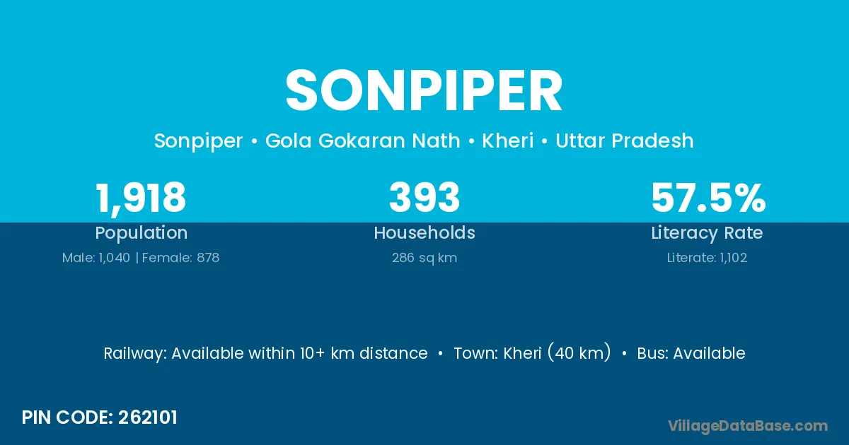 Kheri (40 km) is the nearest town to Sonpiper village for major economic activities and is located approximately 40 km away.