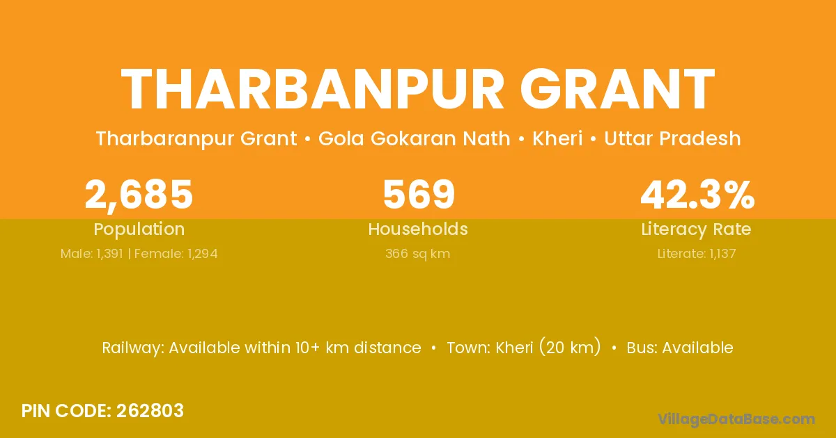 Kheri (20 km) is the nearest town to Tharbanpur Grant village for major economic activities and is located approximately 20 km away.