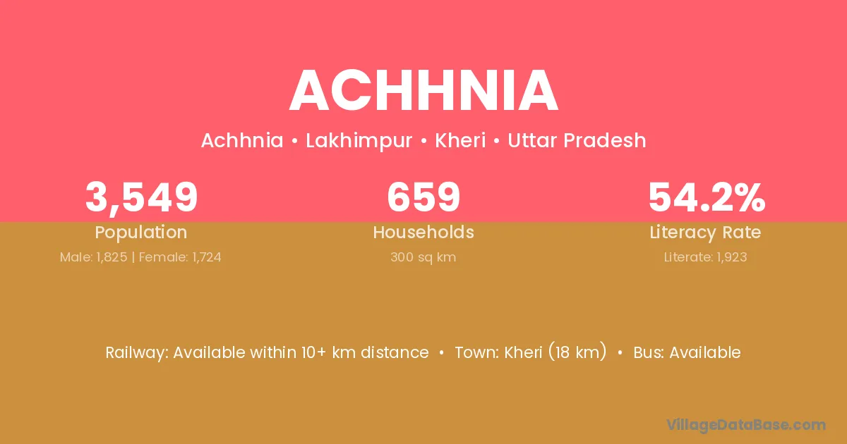 Kheri (18 km) is the nearest town to Achhnia village for major economic activities and is located approximately 18 km away.