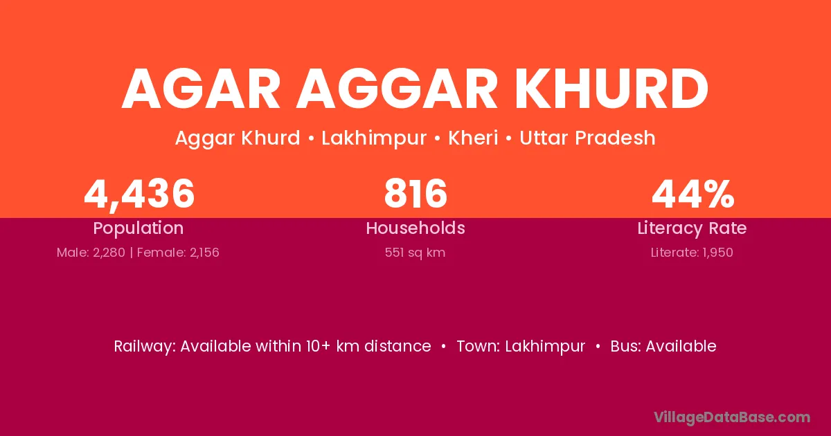 Lakhimpur is the nearest town to Agar Aggar Khurd village for major economic activities