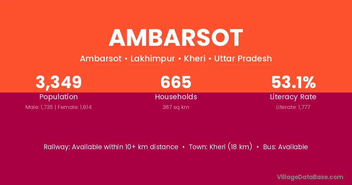 Ambarsot village has a total population of 3,349 people, of which 1,735 are males and 1,614 are females.