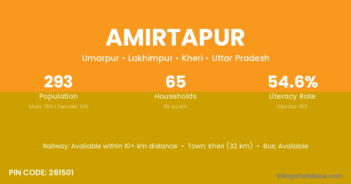 Kheri (32 km) is the nearest town to Amirtapur village for major economic activities and is located approximately 32 km away.