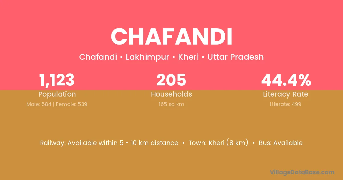 Kheri (8 km) is the nearest town to Chafandi village for major economic activities and is located approximately 8 km away.
