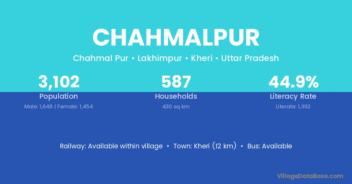 Kheri (12 km) is the nearest town to Chahmalpur village for major economic activities and is located approximately 12 km away.
