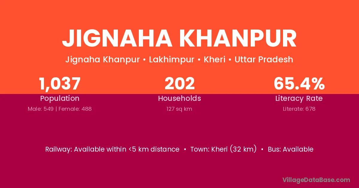 Kheri (32 km) is the nearest town to Jignaha Khanpur village for major economic activities and is located approximately 32 km away.