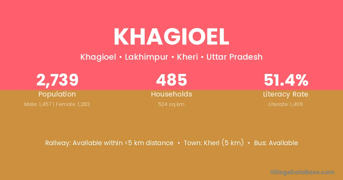 Kheri (5 km) is the nearest town to Khagioel village for major economic activities and is located approximately 5 km away.