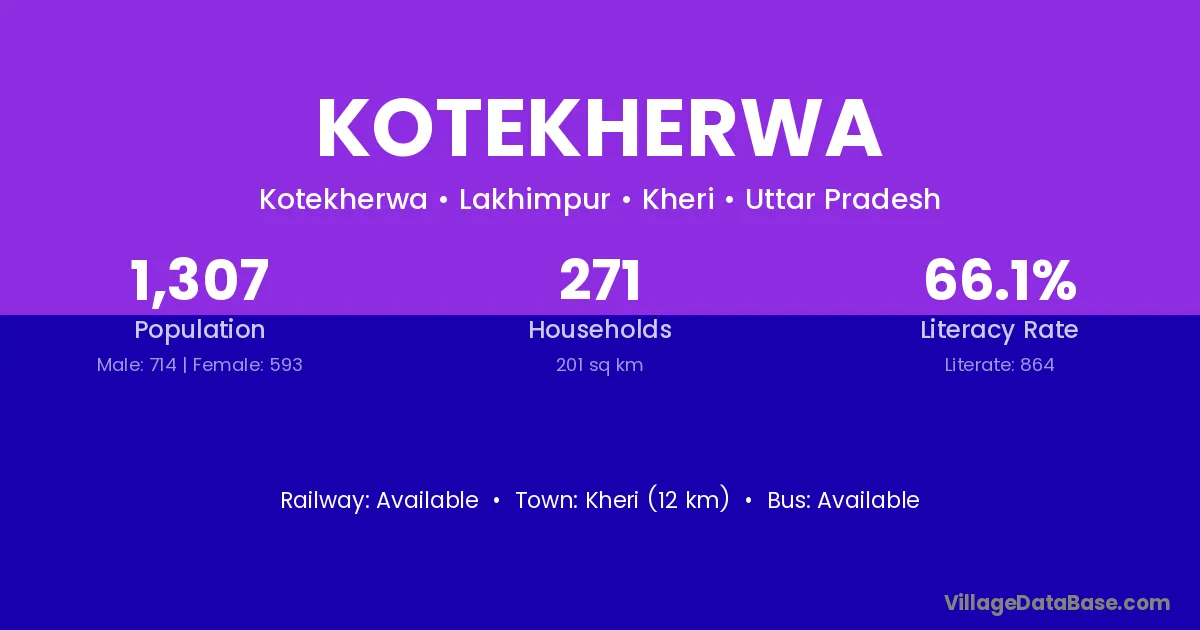 Kotekherwa village has a total population of 1,307 people, of which 714 are males and 593 are females.