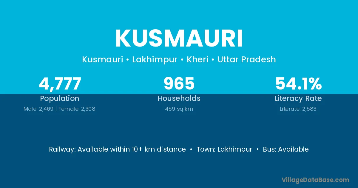 Kusmauri village has a total population of 4,777 people, of which 2,469 are males and 2,308 are females.