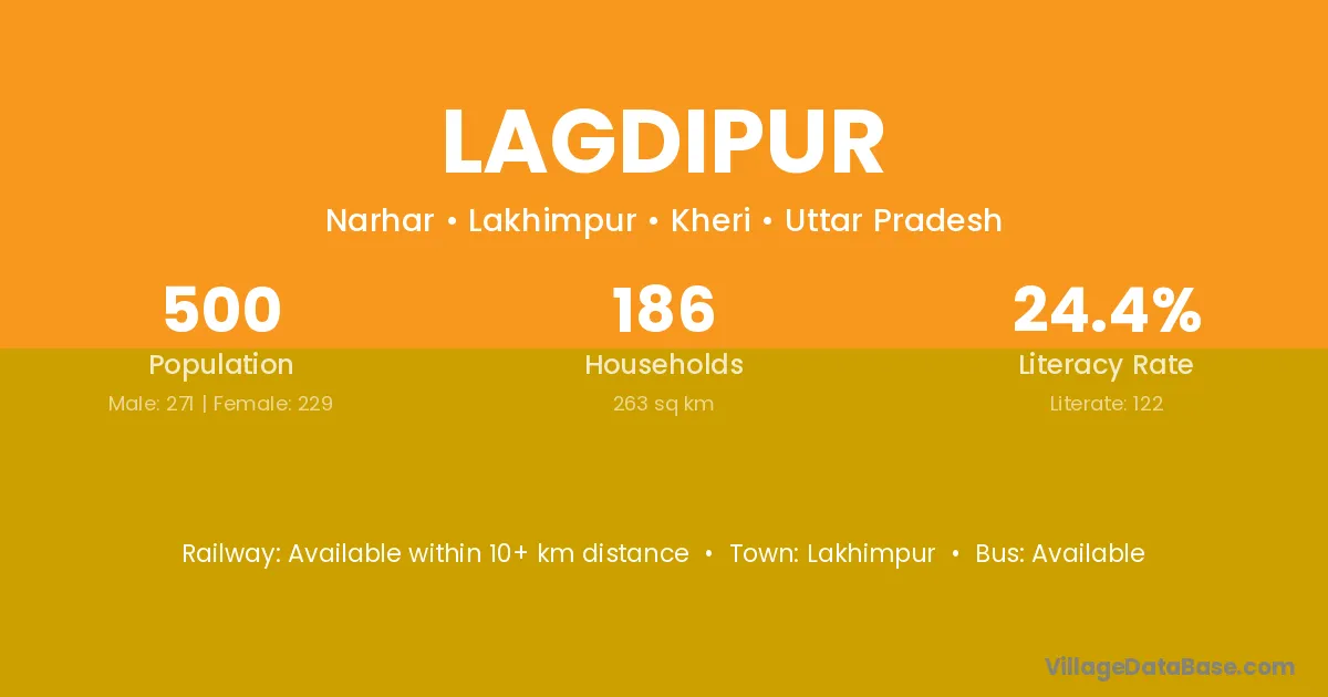 Lagdipur village has a total population of 500 people, of which 271 are males and 229 are females.