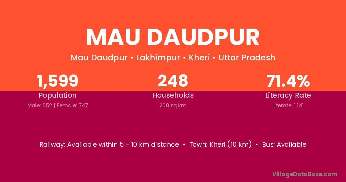 Mau Daudpur village has a total population of 1,599 people, of which 852 are males and 747 are females.