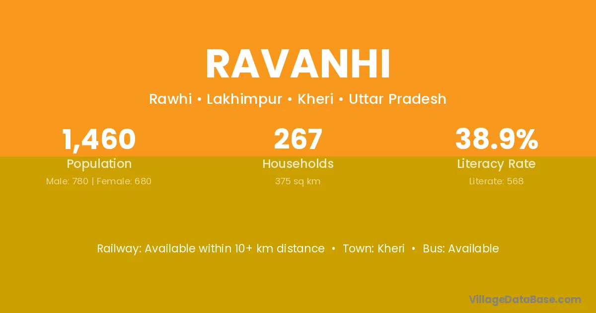Kheri is the nearest town to Ravanhi village for major economic activities