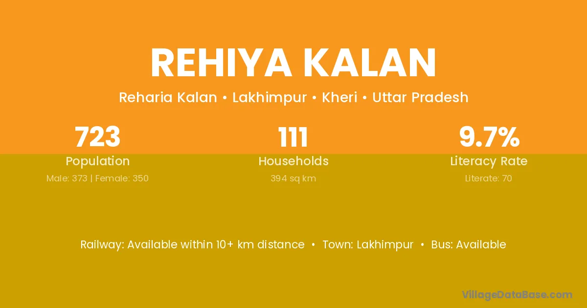 Rehiya Kalan village has a total population of 723 people, of which 373 are males and 350 are females.