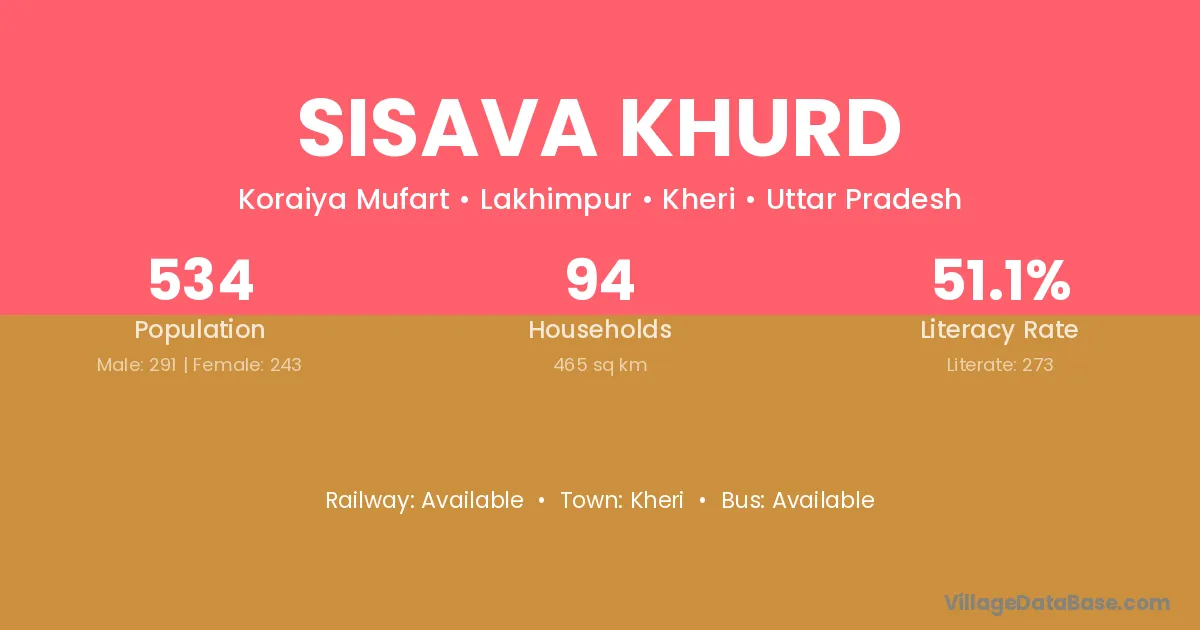 Sisava Khurd village has a total population of 534 people, of which 291 are males and 243 are females.