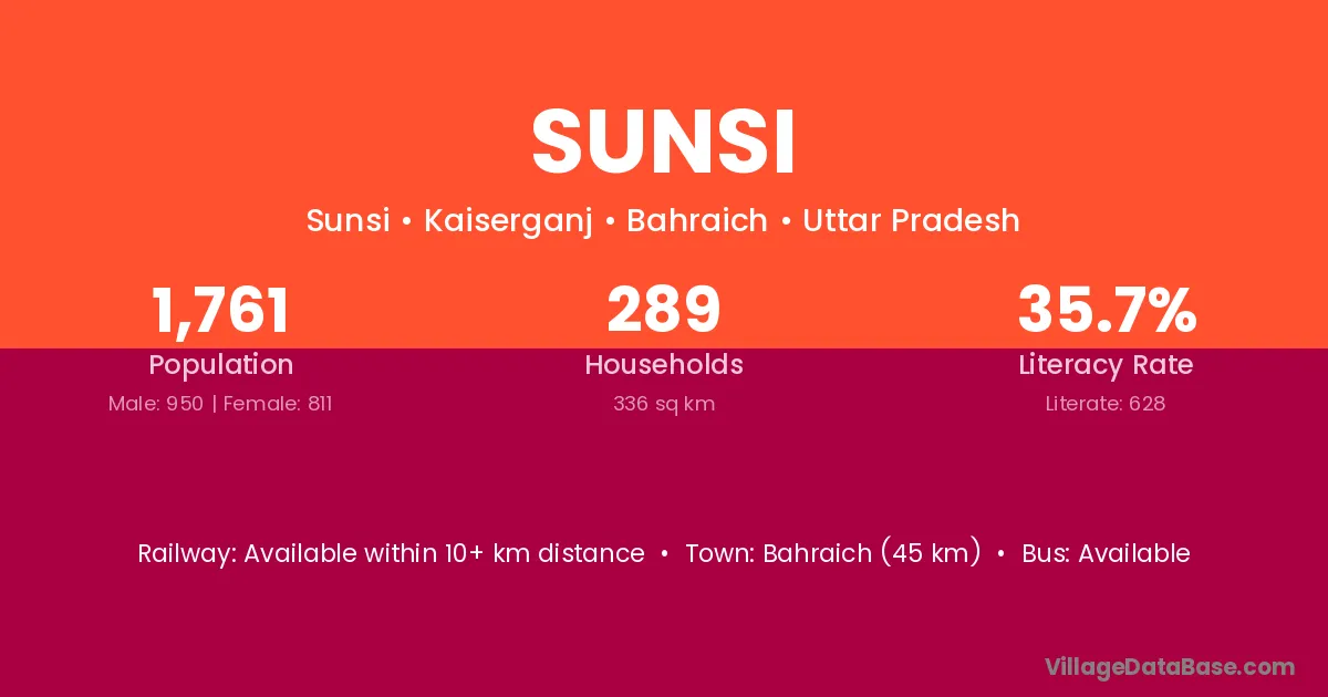 Kheri (15 km) is the nearest town to Sunsi village for major economic activities and is located approximately 15 km away.