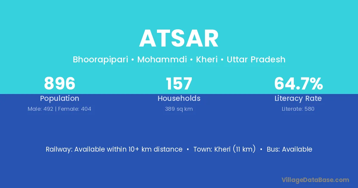 Kheri (11 km) is the nearest town to Atsar village for major economic activities and is located approximately 11 km away.