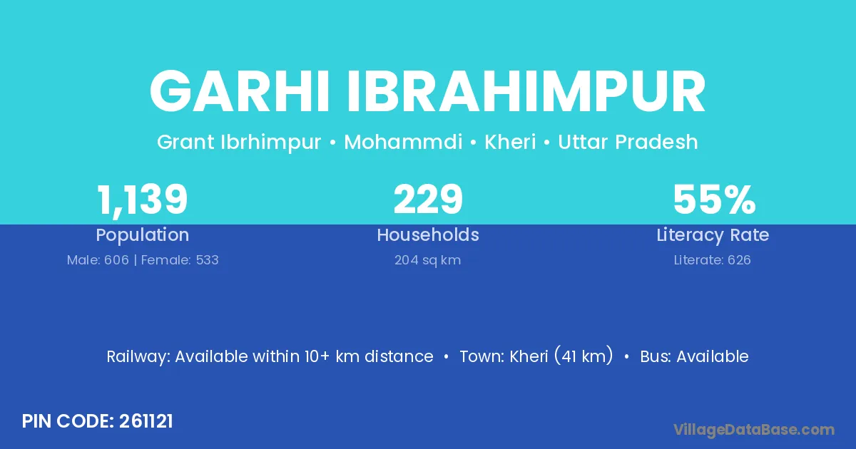 Kheri (41 km) is the nearest town to Garhi Ibrahimpur village for major economic activities and is located approximately 41 km away.