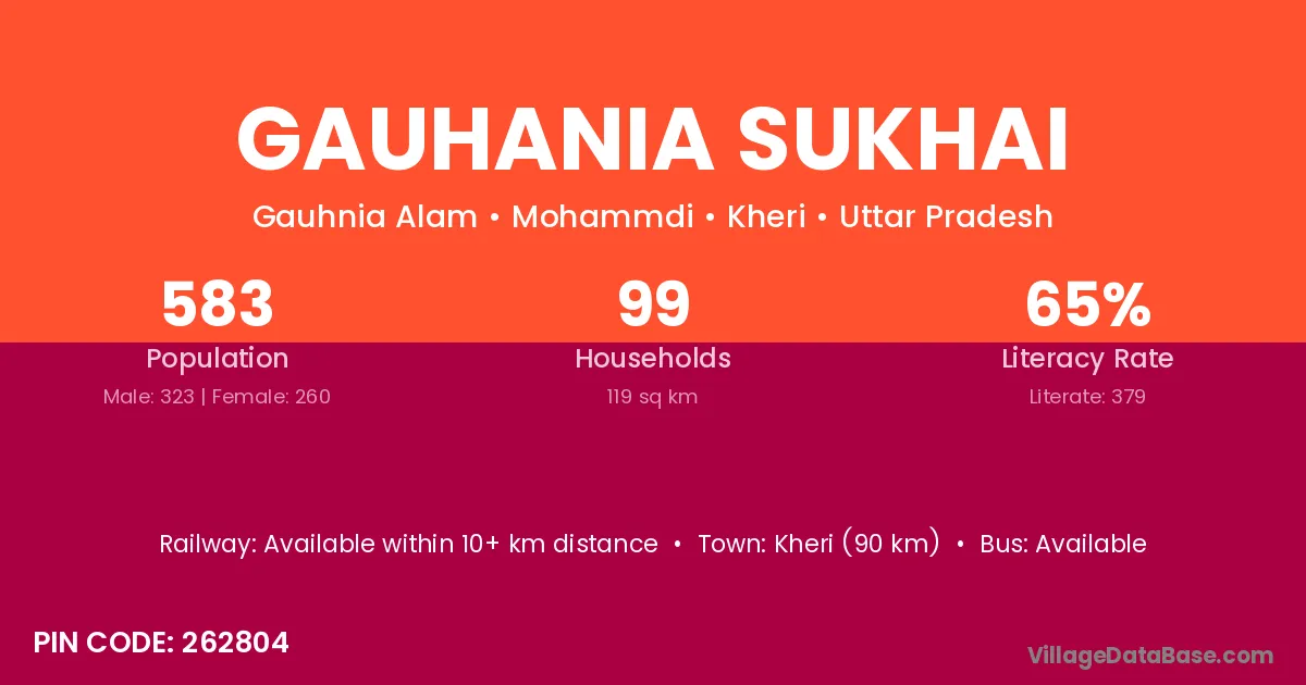 Gauhania Sukhai village has a total population of 583 people, of which 323 are males and 260 are females.