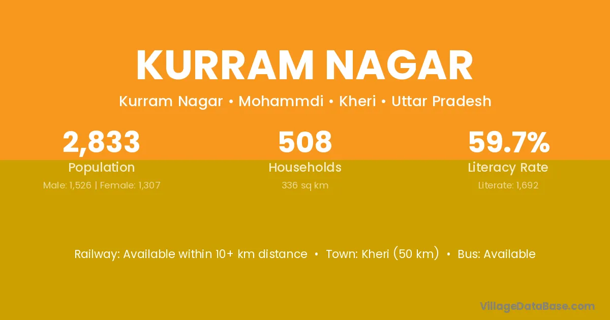 Kheri (50 km) is the nearest town to Kurram Nagar village for major economic activities and is located approximately 50 km away.